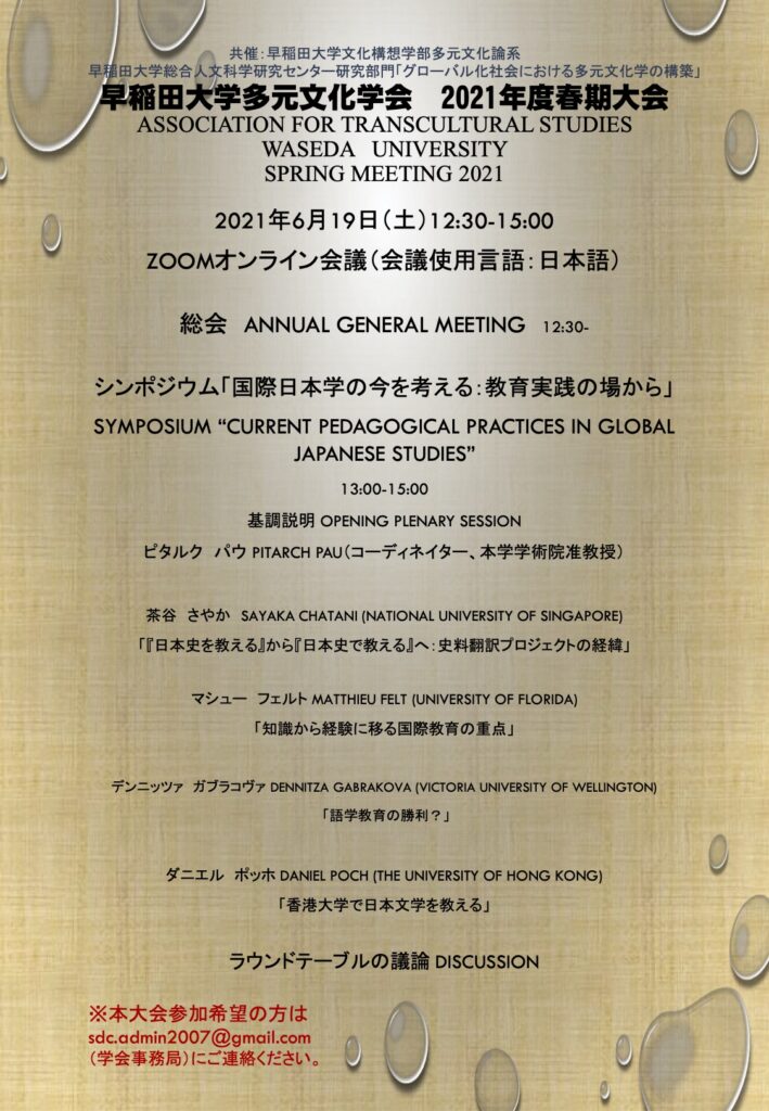 多元文化学会 2021年度春期大会総会・シンポジウムを開催します